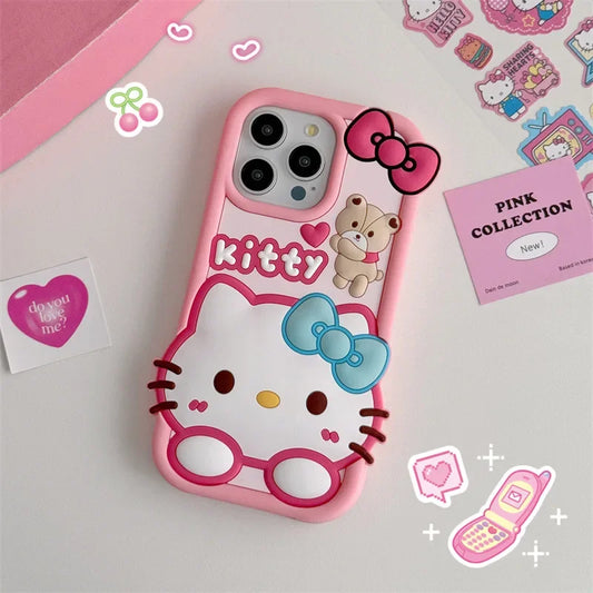 Cute Cartoon Bear Hello Kitty Soft Silicone Phone Case For iPhone