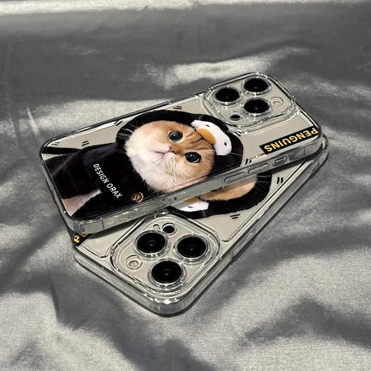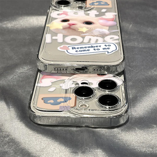 Cute Cat Luxury Plating Make Up Mirror Cover Phone Case