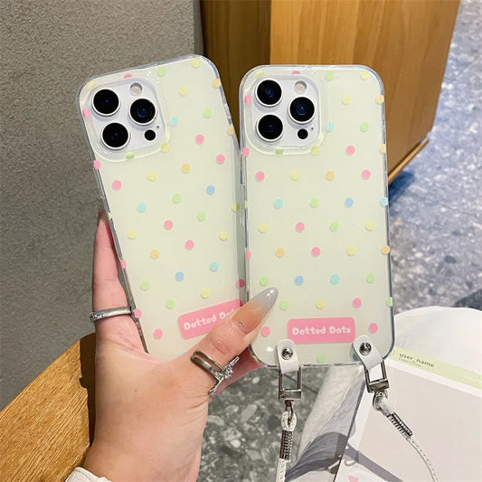 Fashion Colorful Polka Dot Phone Case With Wrist Stra For iPhone