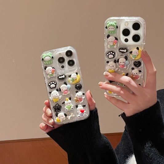 3D Stereoscopic Cute Cartoon Pochacco Transparent Phone Case