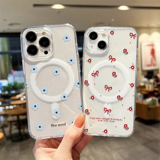 Cute Bow For Magsafe Magnetic Wireless Charge Case For iPhone