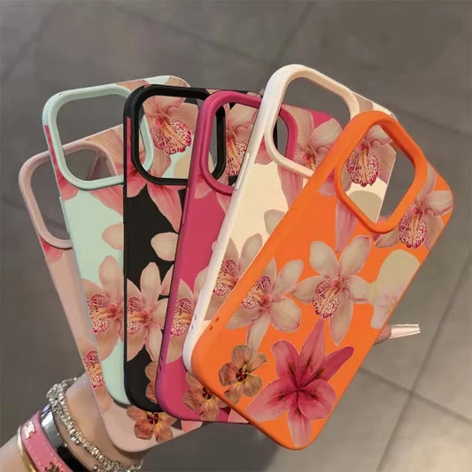 Watercolor Hibiscus Flower Lichee Pattern Phone Case For iPhone