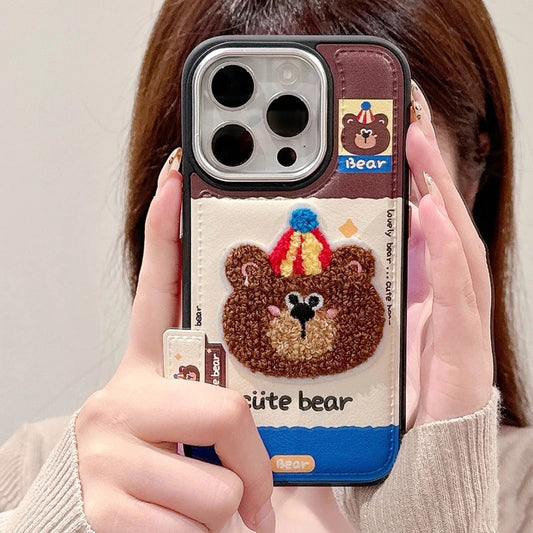 Cute Cartoon Embroidery Bear Dog Leather Phone Case