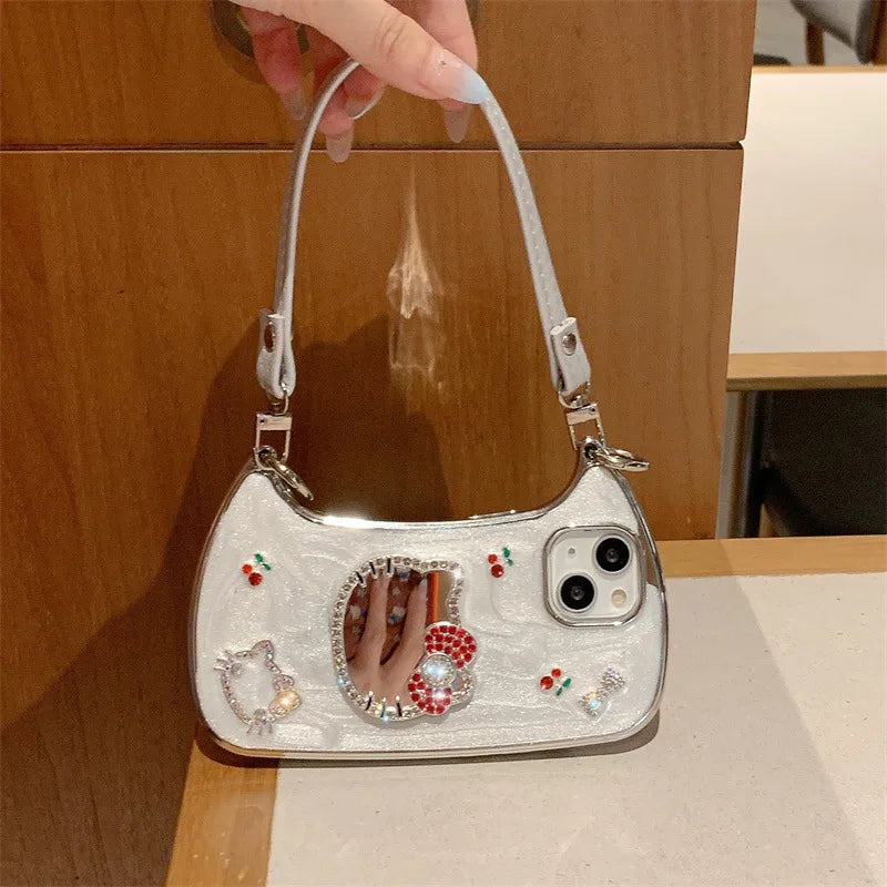 This 3D Diamond Cute Bow Hello Kitty Cherry Glitter Mirror Phone Case combines playful design with practical protection for your iPhone. Featuring a dazzling 3D bow and sparkling cherry accents, it adds a vibrant, stylish flair while the mirrored back enhances convenience for quick touch-ups. Crafted to safeguard your device from scratches and minor impacts, this case offers both aesthetic charm and reliable defense for everyday use.