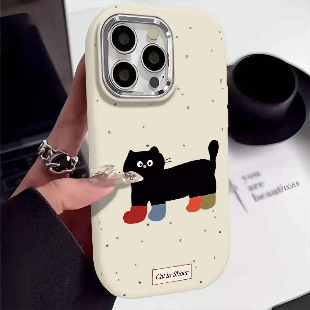 Black Cat Metal Lens Bumper Soft Silicone Cover Phone Case