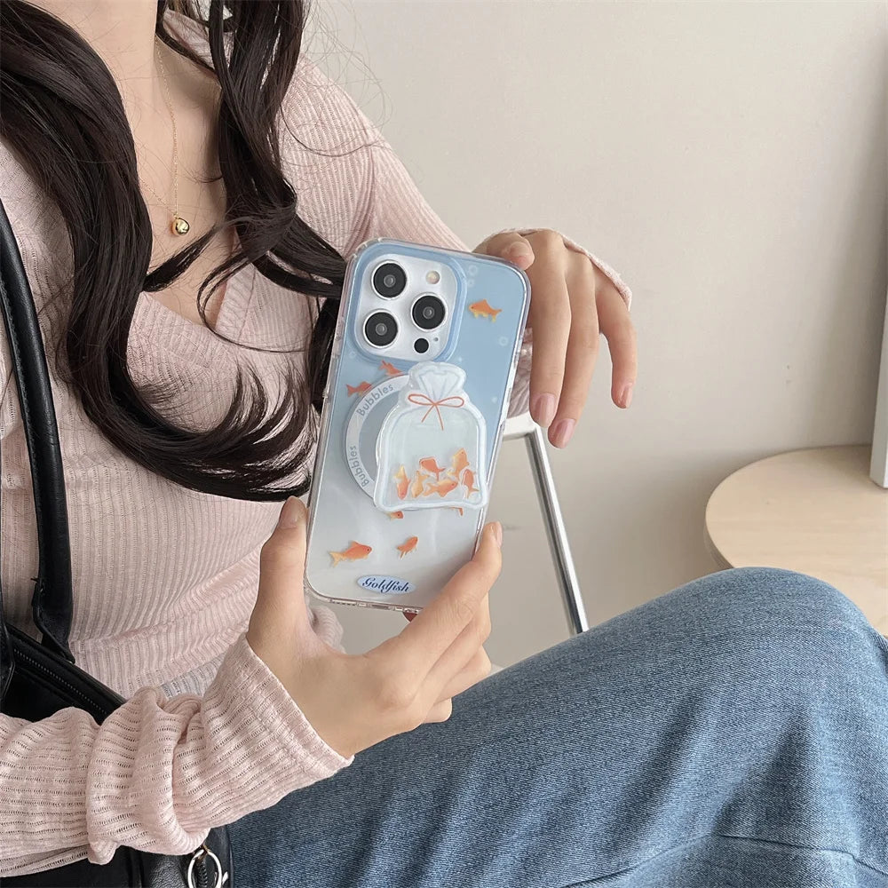 Blue Cute Gradient Color fish Wireless Charge Case For iPhone
