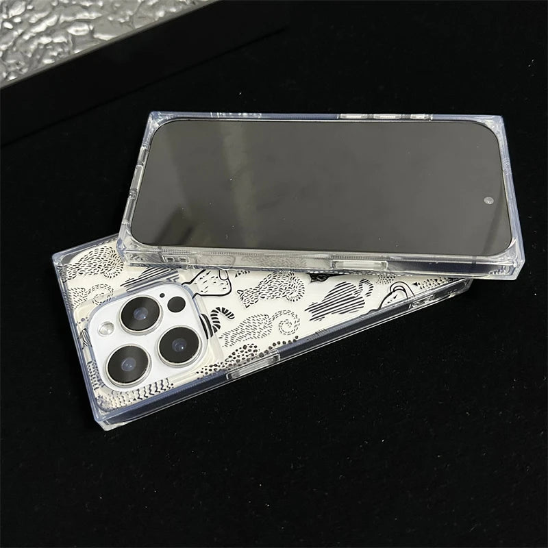 Cartoon Sketch Cats Pattern Right Angled Edge Phone Case
