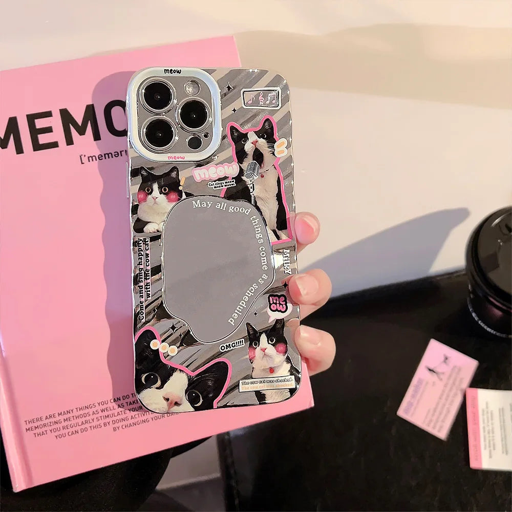Protect your iPhone with a touch of charm using the Creative Black Cat Puppy Mirror Cover. Designed for seamless fit and functionality, this unique case combines stylish fur-friendly aesthetics with a built-in mirror, perfect for on-the-go touch-ups. Its durable materials safeguard your device from everyday bumps and scratches, while the playful design showcases your love for pets and creativity. Ideal for those seeking both protection and personality in their phone accessories.