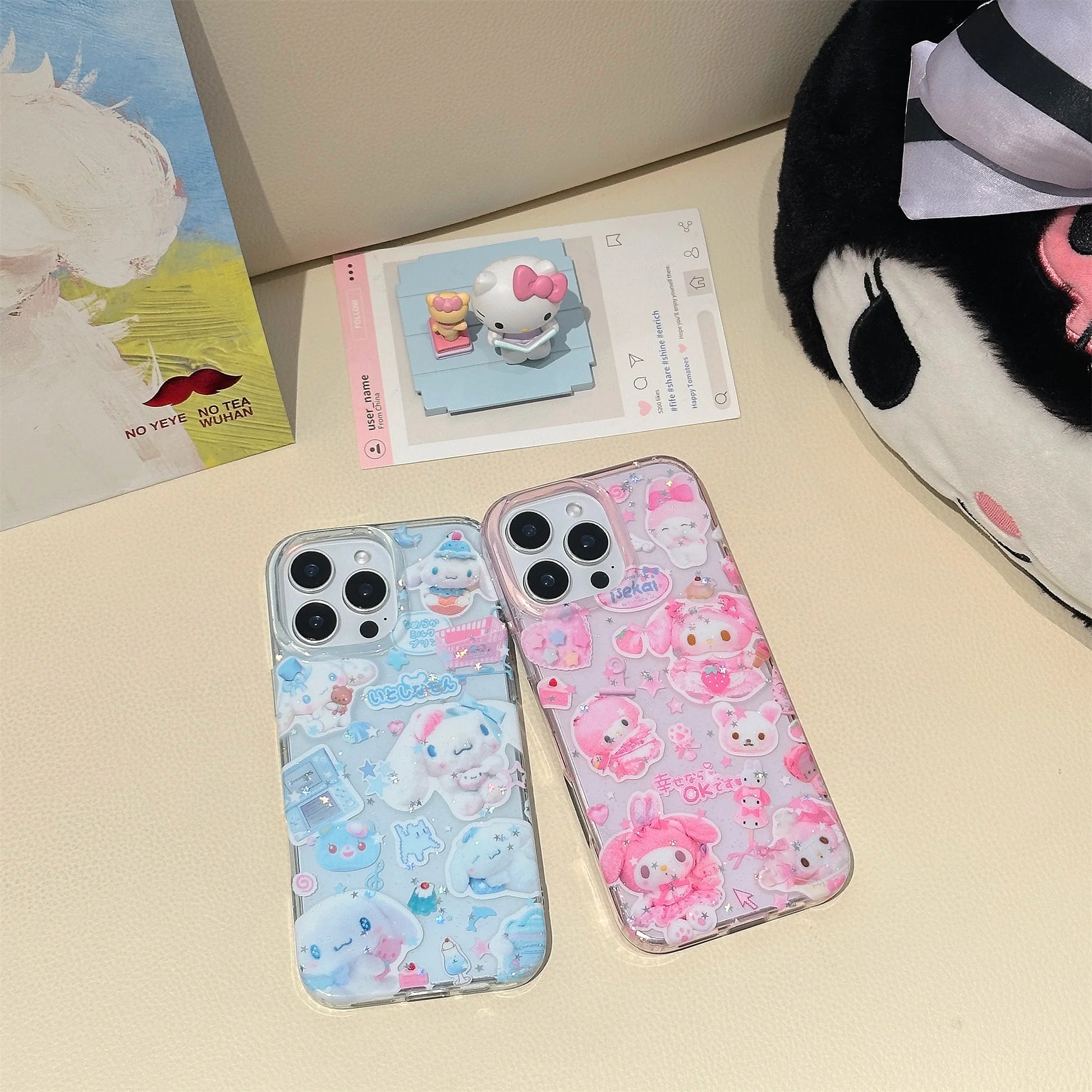 Cute Cinnamoroll Sticker series Bling Glitter Phone Case