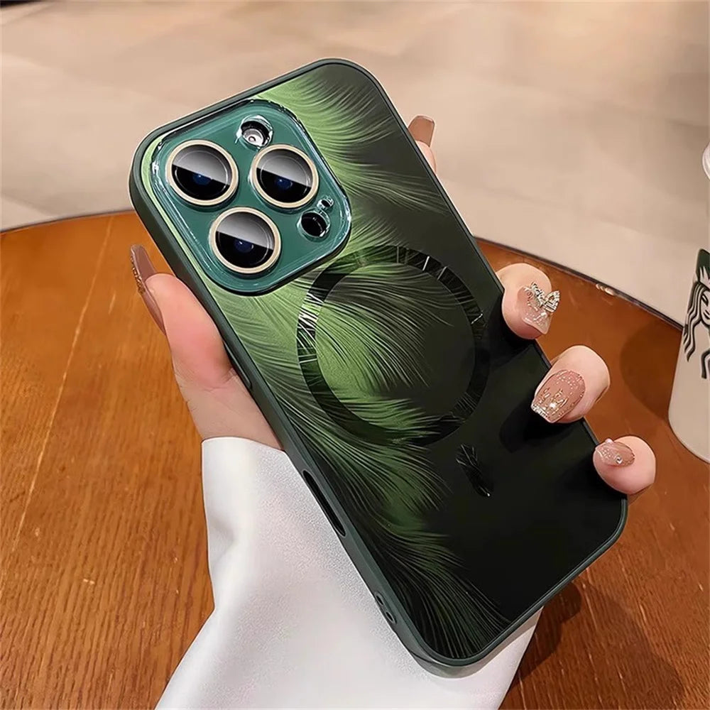 Enhance your iPhone with the Dazzling For MagSafe Glitter Feather Pattern Magnetic Phone Case, designed for a perfect blend of style and functionality. This case features a shimmering glitter feather design that adds a sophisticated sparkle while maintaining MagSafe compatibility for effortless wireless charging and secure magnetic attachment. Crafted to protect your device from daily wear, it offers reliable defense without compromising on elegance. Ideal for users seeking both aesthetic appeal and advanced magnetic functionality in one sleek accessory.