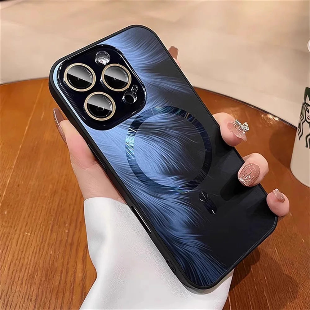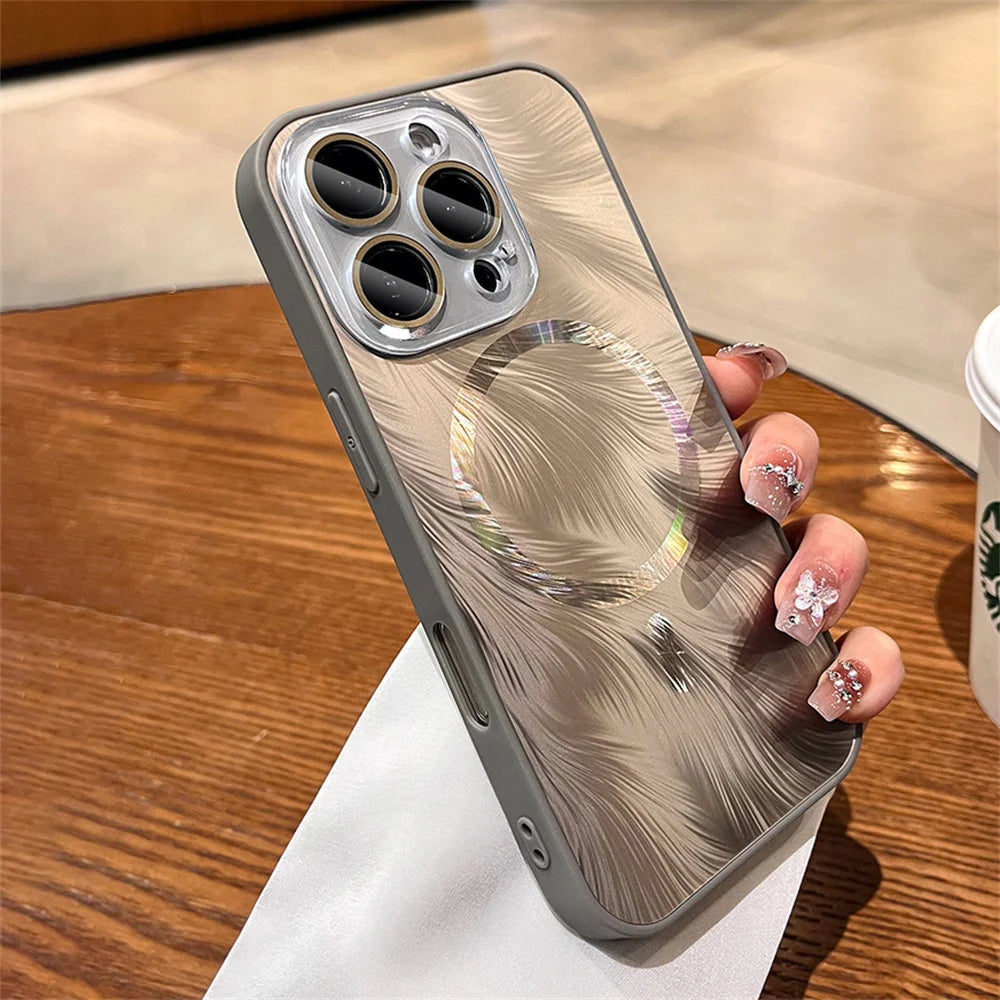 Dazzling For Magsafe Glitter Feather Pattern Magnetic Phone Case For iPhone