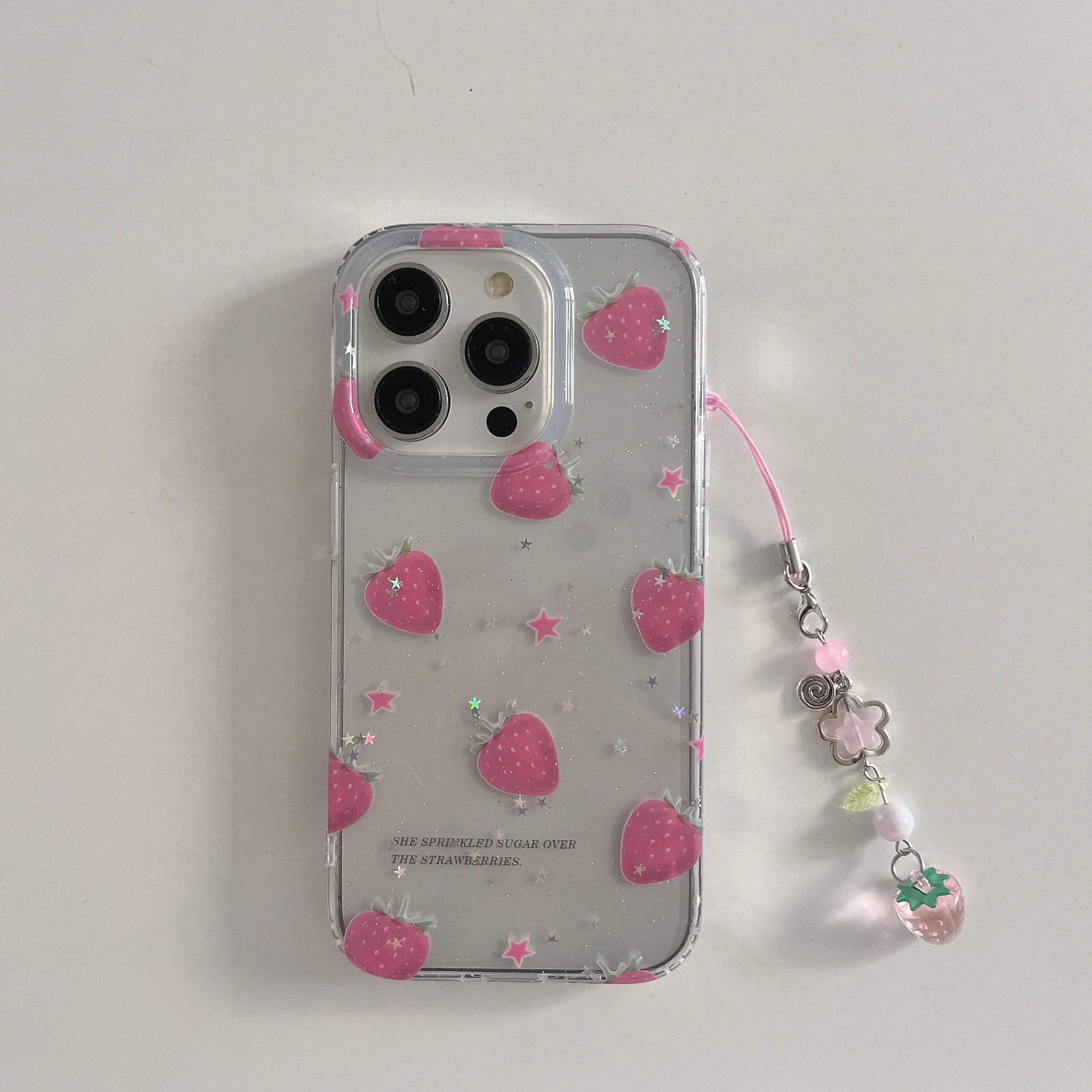Glitter Strawberry With 3D Dangle Shockproof Cute Phone Case