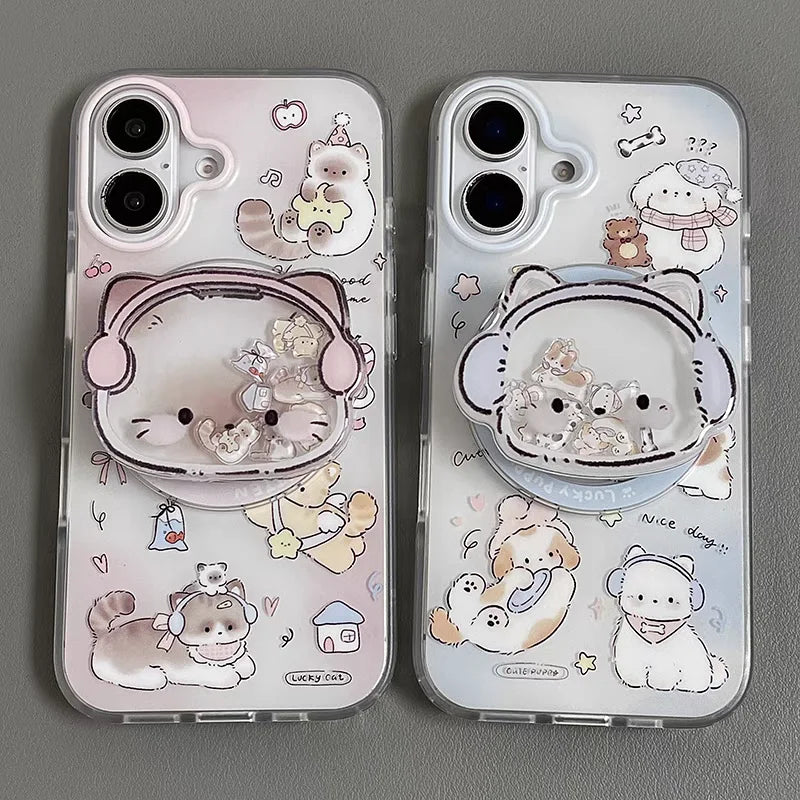 Happy Cute Kitten Puppy Bracket Compatible Phone Case