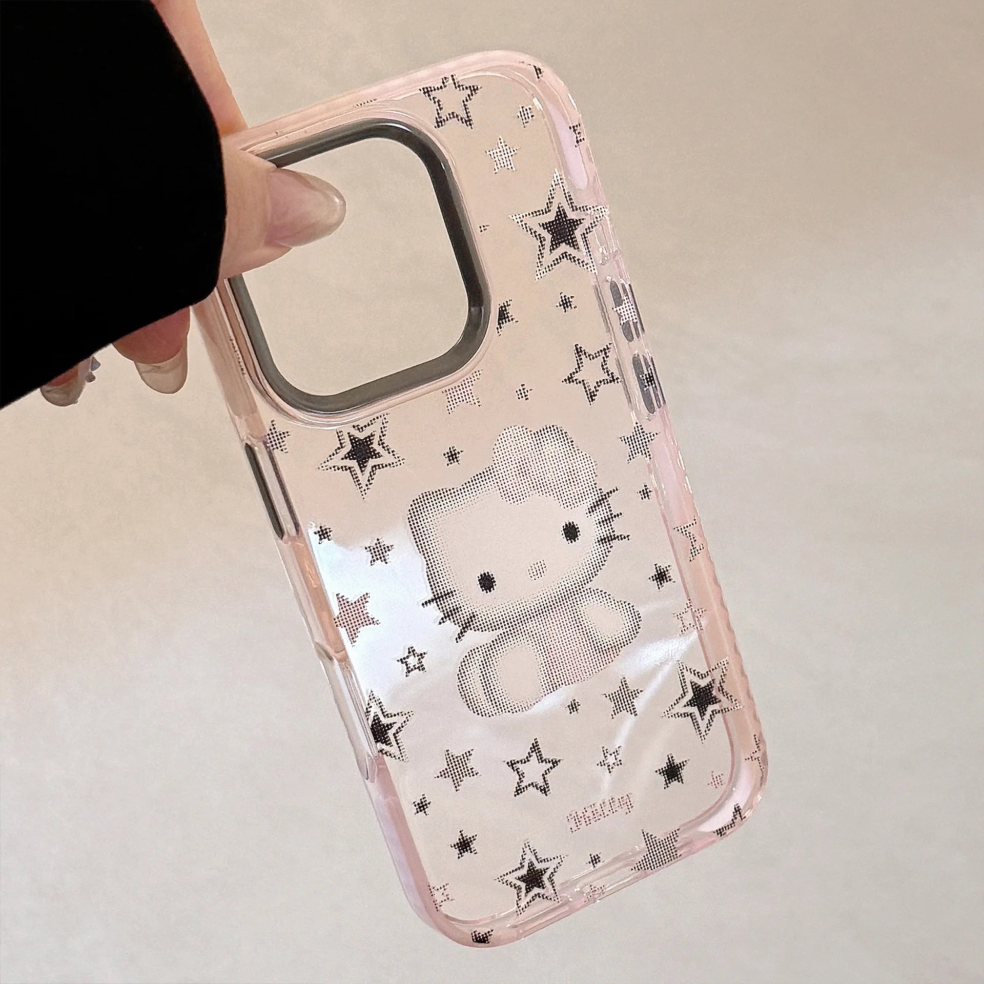 Korean Cartoon Pixel Hello Kitty Stars Soft Phone Case For iPhone