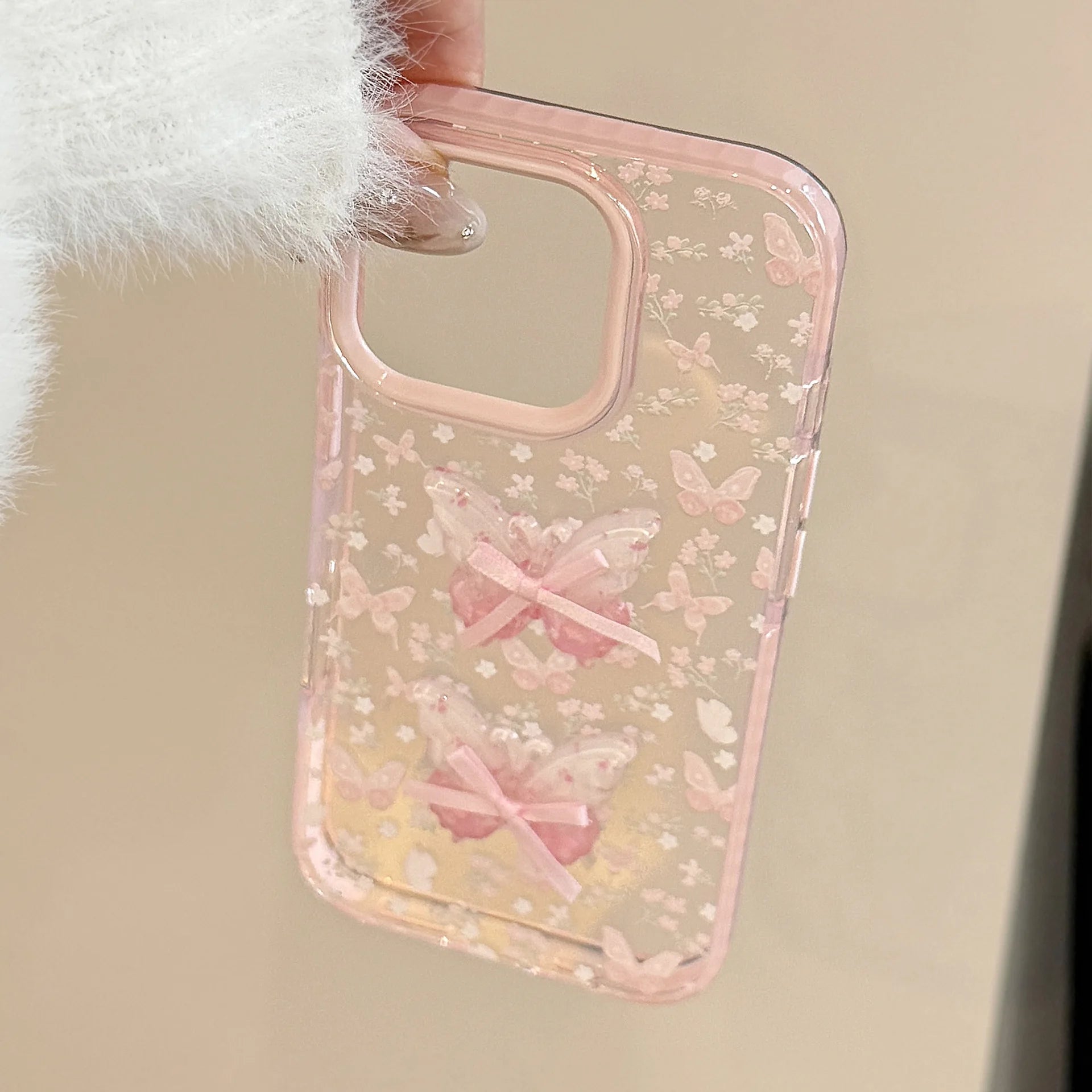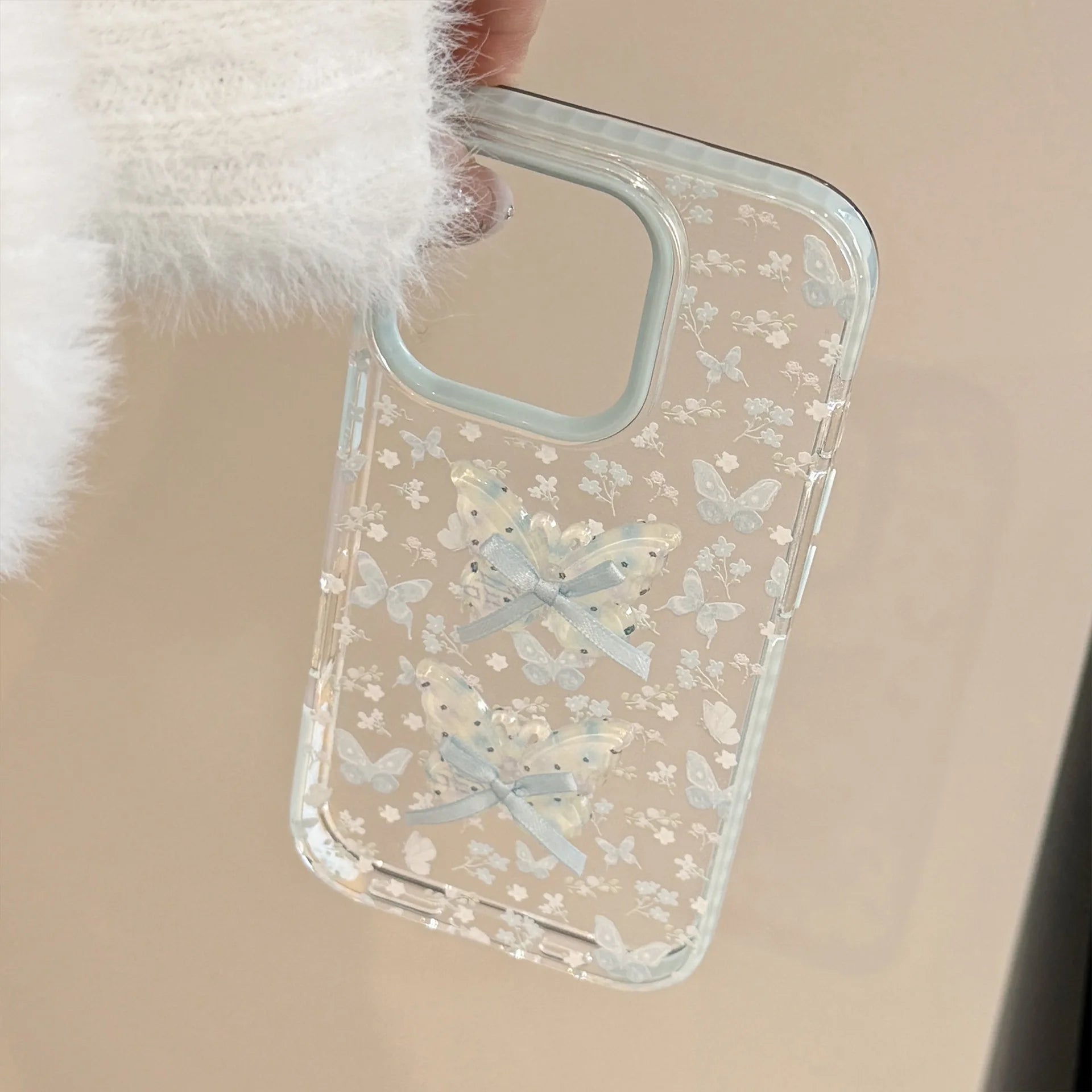 Korean Full Screen Flowers 3D Butterfly Bowknot Soft Phone Case For iPhone