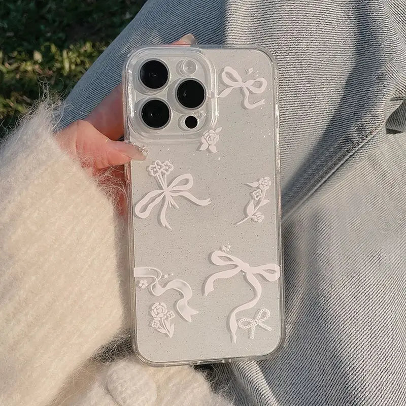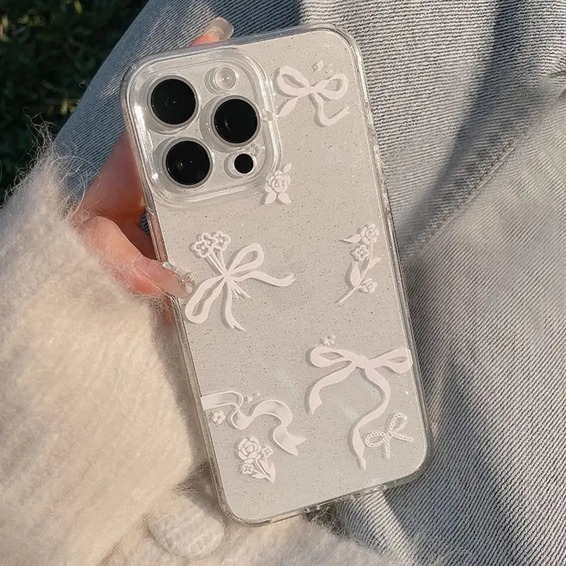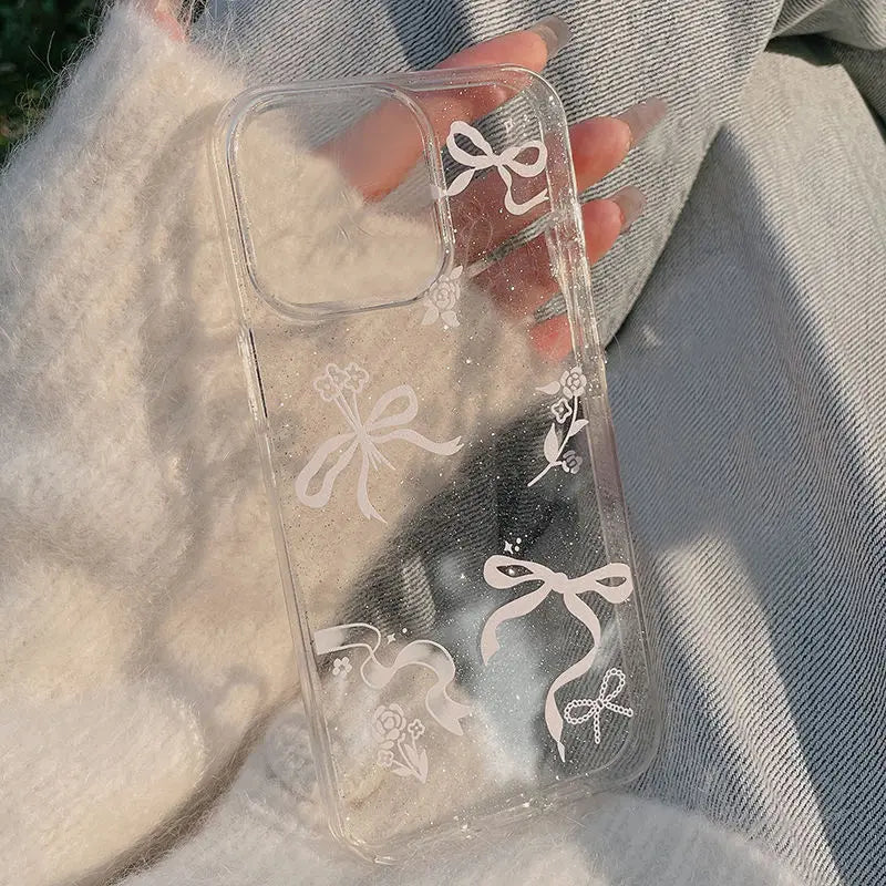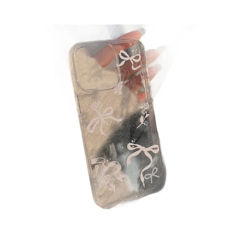 Luxury Bow Flower Glitter Transparent Phone Case