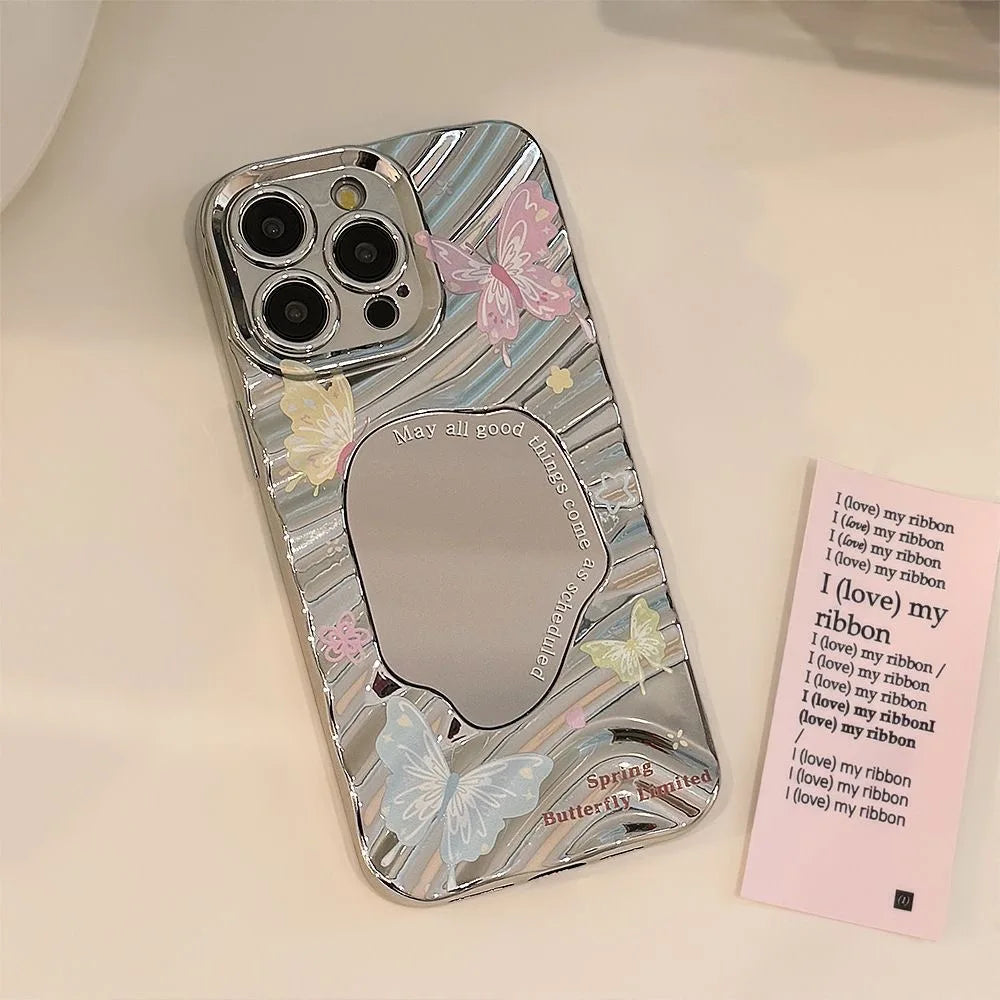 Luxury Plating Make Up Mirror Wave Bumper Shockproof Phone Case