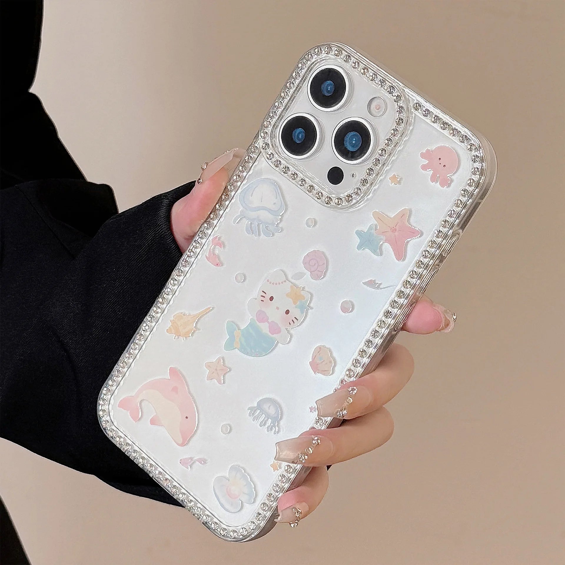 Summer Marine Mermaid Hello Kitty Glitter Bracket Phone Case For iPhone