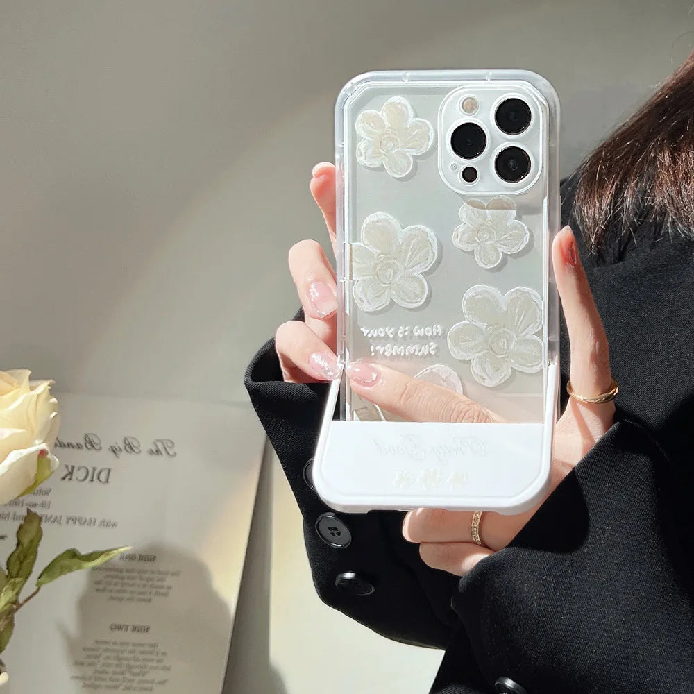 White Floral invisible Bracket Phone Case For iPhone